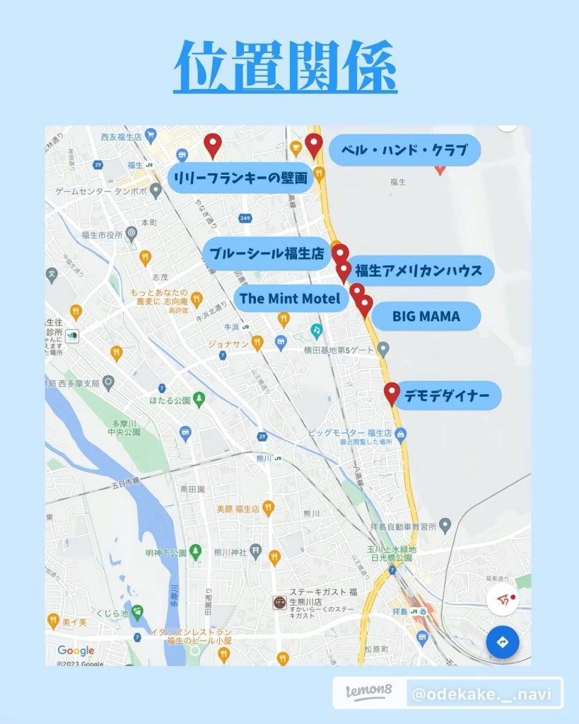 このように、福生ベースサイドストリートはレトロな雰囲気と地元の魅力が融合した素敵な場所です。